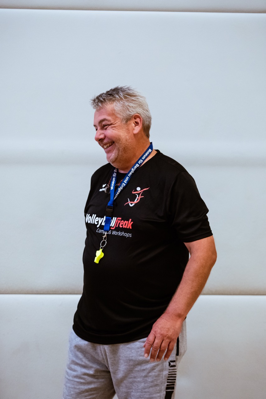 Hier kommen die ersten Trainer vom Indoor-Beachvolleyballcamp in Köln.