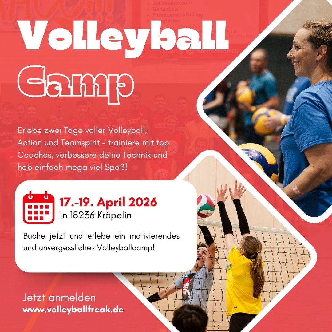 Anfang September laden wir dich nach Kröpelin zum nächsten Camp in Mecklenburg-Vorpommern ein. Zusammen mit dem SC Kröpelin 2023 e.V. veranstalten wir wieder dort ein 3 Tages Camp für Hallenvolleyballer*innen.
