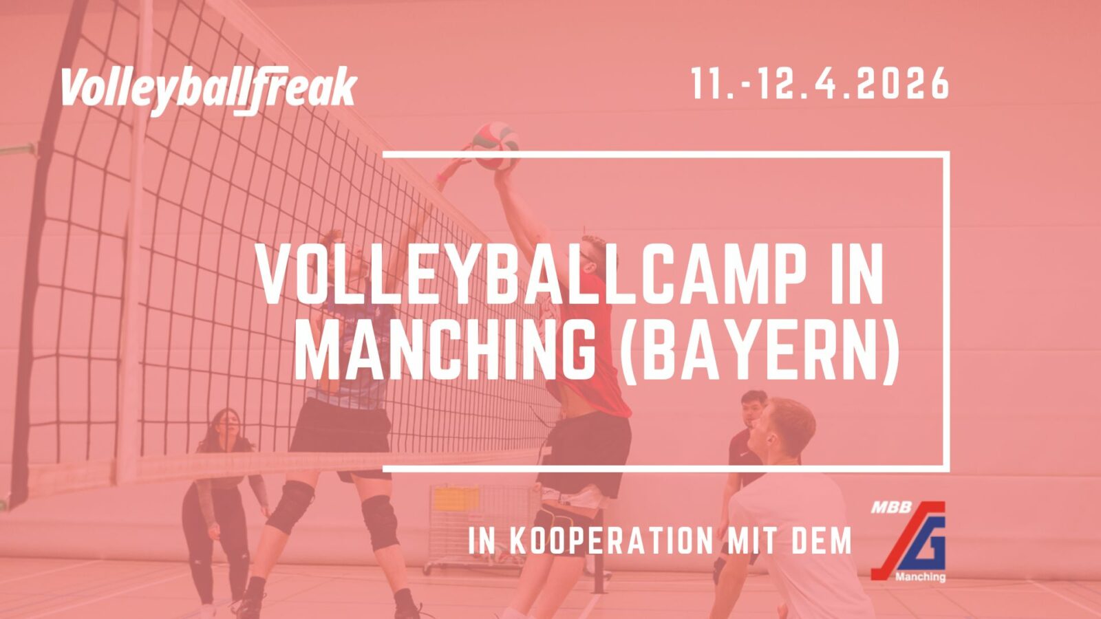 Im April sind wir wieder in Bayern genauer gesagt Manching bei Ingolstadt für ein weiteres Volleyballcamp. Dort sind wir zu Gast beim MBB SG Manching. Auf dich warten 1 herausragende Headcoach und weitere Top-Trainer in einer modernen 3-fach Halle.