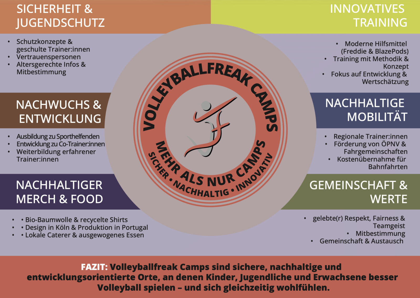 Wir verbinden Sicherheit, Nachhaltigkeit, moderne Trainingskonzepte, Nachwuchsförderung und faire Strukturen zu einem ganzheitlichen Camp-Erlebnis.